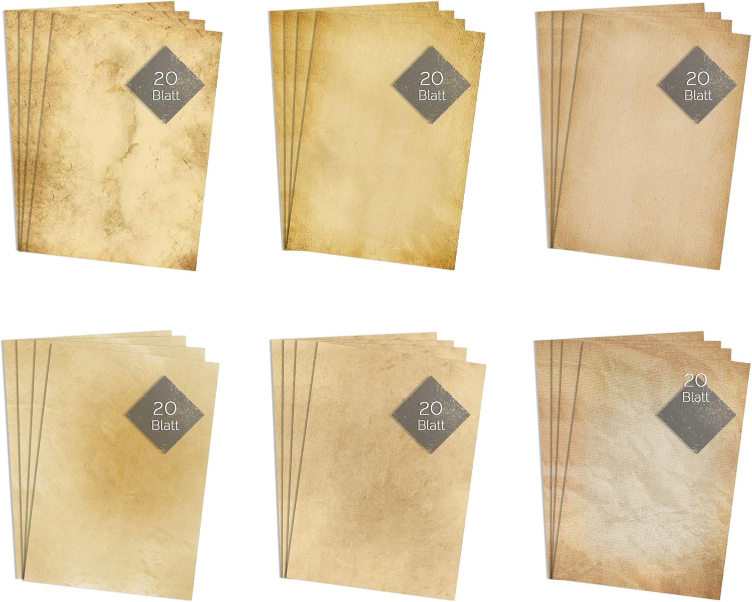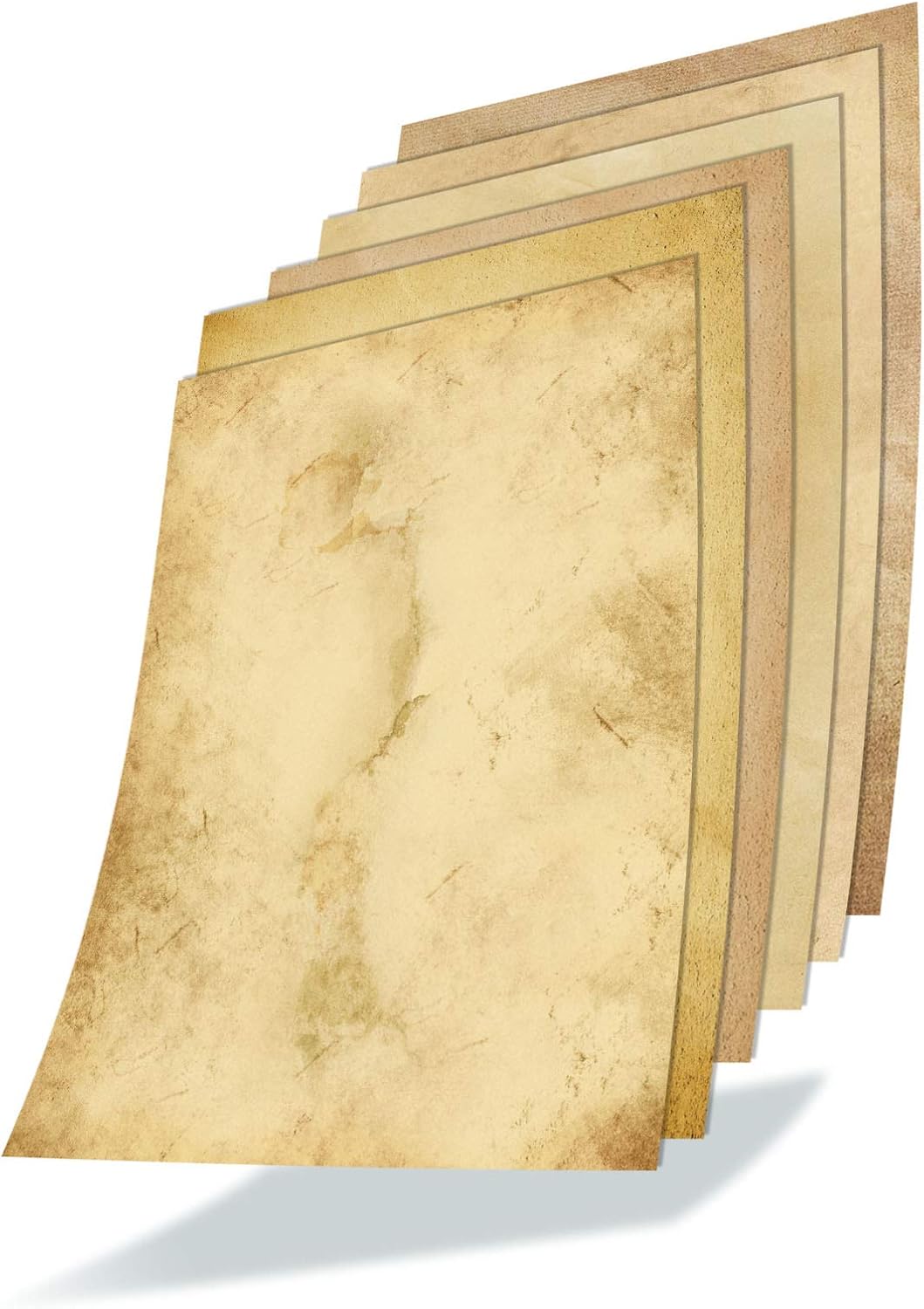 120 Sheets Waste Paper, Vintage DIN A4 Printable – Certificates Treasure Cards Craft Paper, Cardboard Paper – Craft for Cards, Nobility Gifts, Nostalgia Birthday Knight and Pirates Hell
