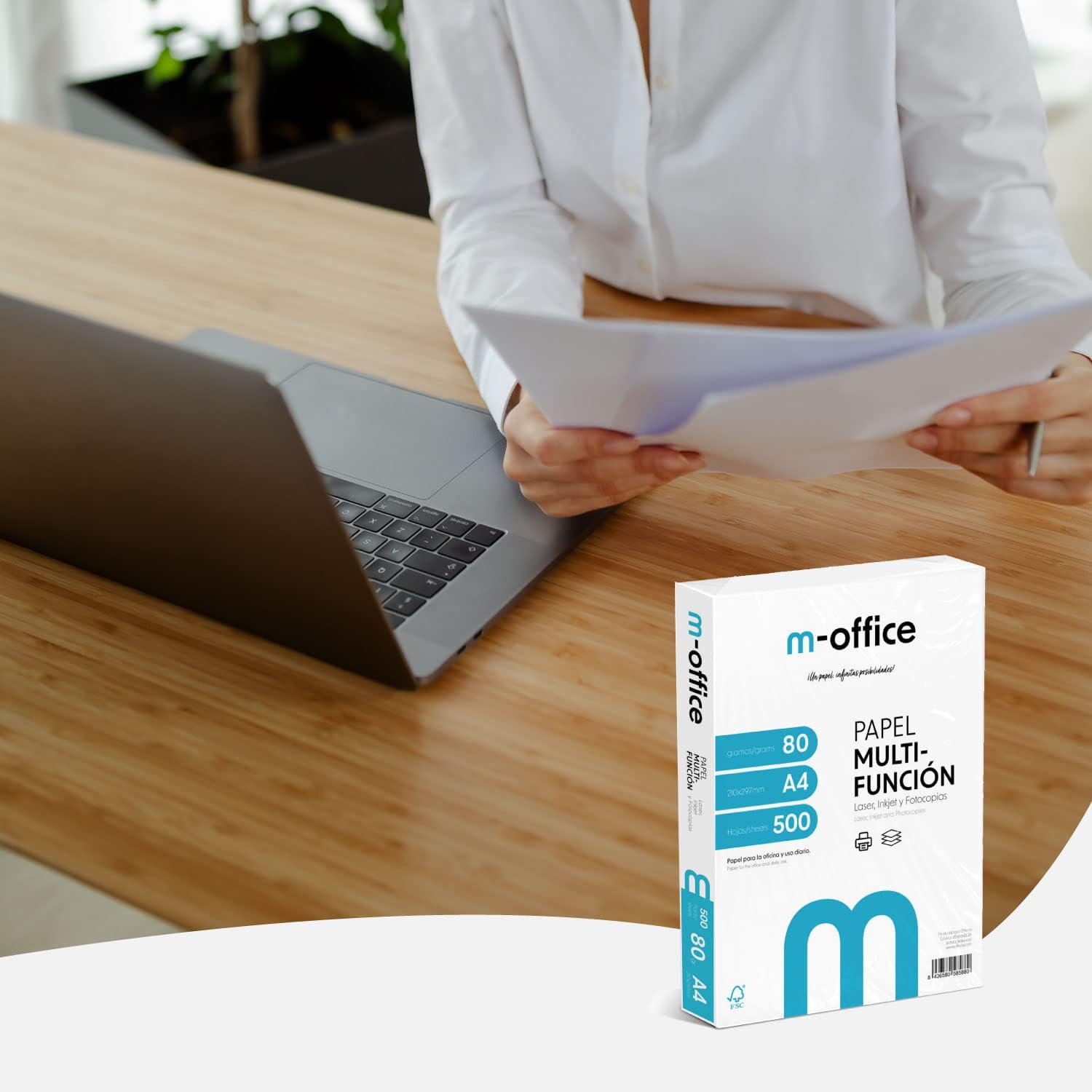 • Paper: The m-office paper has a size A4 (210 x 297 mm) and has a weight of 80 grams and each pack contains 500 white sheets. Made from durable materials that ensure excellent print and write quality on each side.
