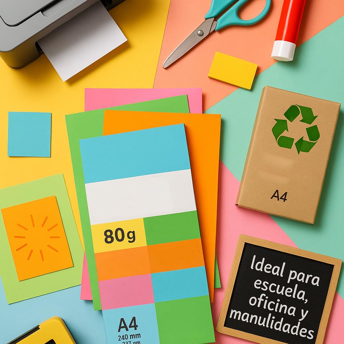- Perfect for schools, offices, and educational activities: ideal in school environments for teaching activities, worksheets, and children’s crafts. Also ideal for offices that need A4 80g colored sheets to organize documents, internal signage, or attractive presentations.