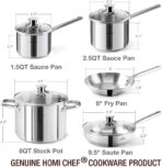 - DEDICATED CUSTOMER SERVICE – Original HOMICHEF stainless steel cookware products, certified by ISO9001, BSCI, etc. – TRADEMARK filed in USA – In operation since 1998 – This product comes with a 6-year product warranty and lifetime customer service – You can always come to us for discounted parts, cooking consultations and customer service at HOMICHEF store on Amazon.