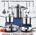 Be the first to review “HOMICHEF 14-Piece Nickel Free Stainless Steel Pans Set – Nickel Free Pots and Pans – Non-Toxic, Healthy Induction Cookware” Cancel reply