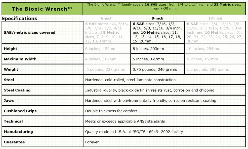 - Suitable for 6 inch sizes: 7/16, 1/2, 9/16, 5/8, 11/16, 3/4 inches, and 10 metric sizes: 11, 12, 13, 14, 15, 16, 17, 18, 19, 20 mm